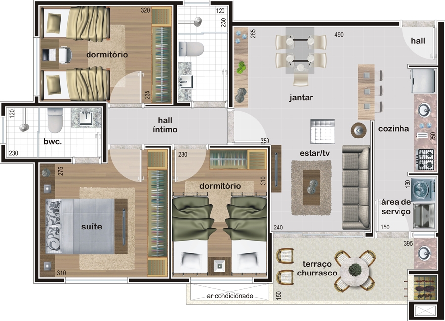 - 1 Suíte + 2 Dormitórios